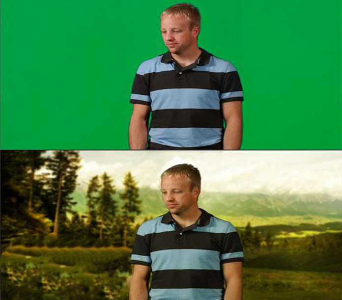 It is commonly used for weather forecast broadcasts, wherein a news presenter is usually seen standing in front of a large CGI map during live television newscasts, though in actuality it is a large blue or green background. When using a blue screen, different weather maps are added on the parts of the image where the colour is blue. If the news presenter wears blue clothes, his or her clothes will also be replaced with the background video. Chroma keying is also common in the entertainment industry for visual effects in movies and video games.